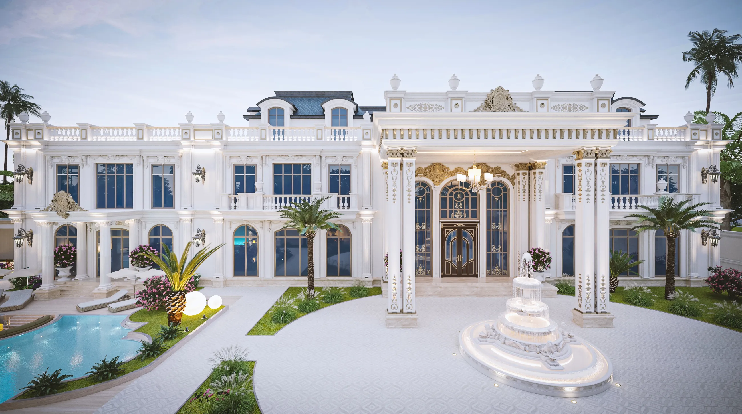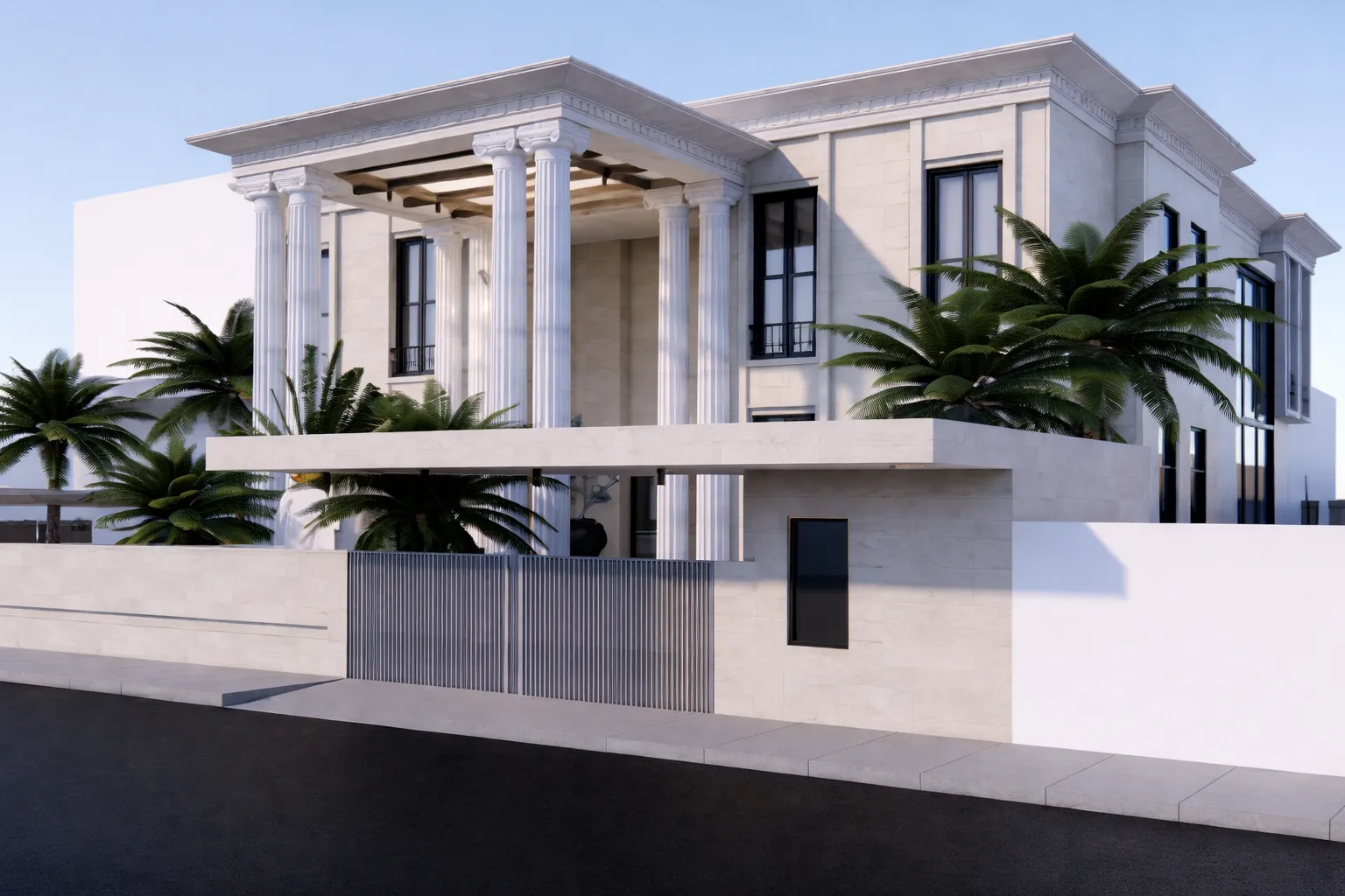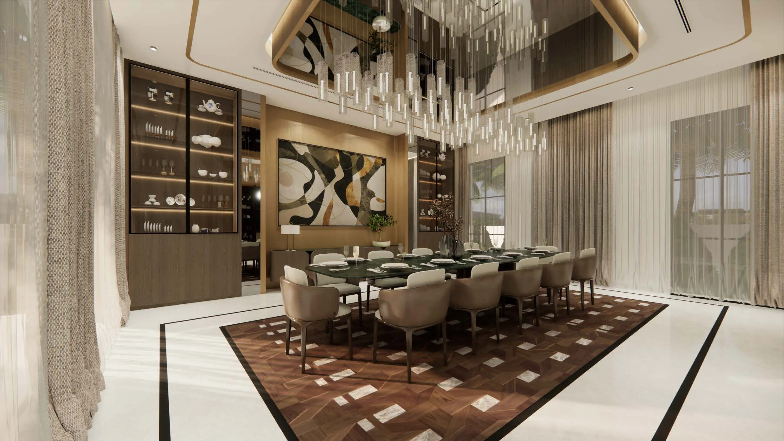A spacious room with a big window, offering a serene view.A stylish bedroom with a sleek marble wall, creating a contemporary and elegant ambiance.